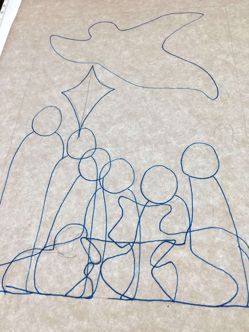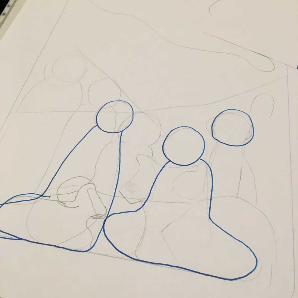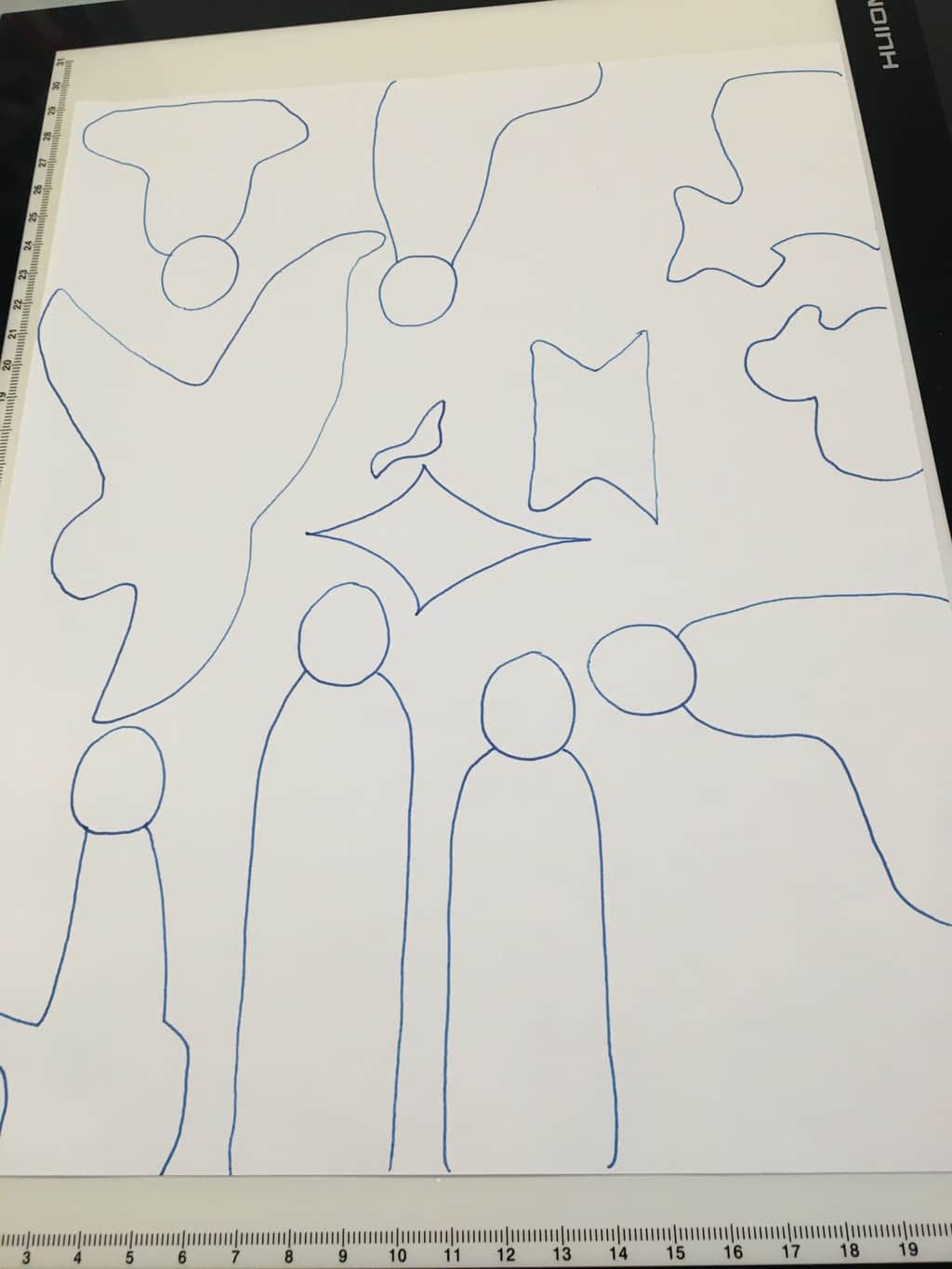 When I was happy with the proportions I outlined each piece with ink and placed them on my awesome new LED light pad to trace them on a sheet of paper.