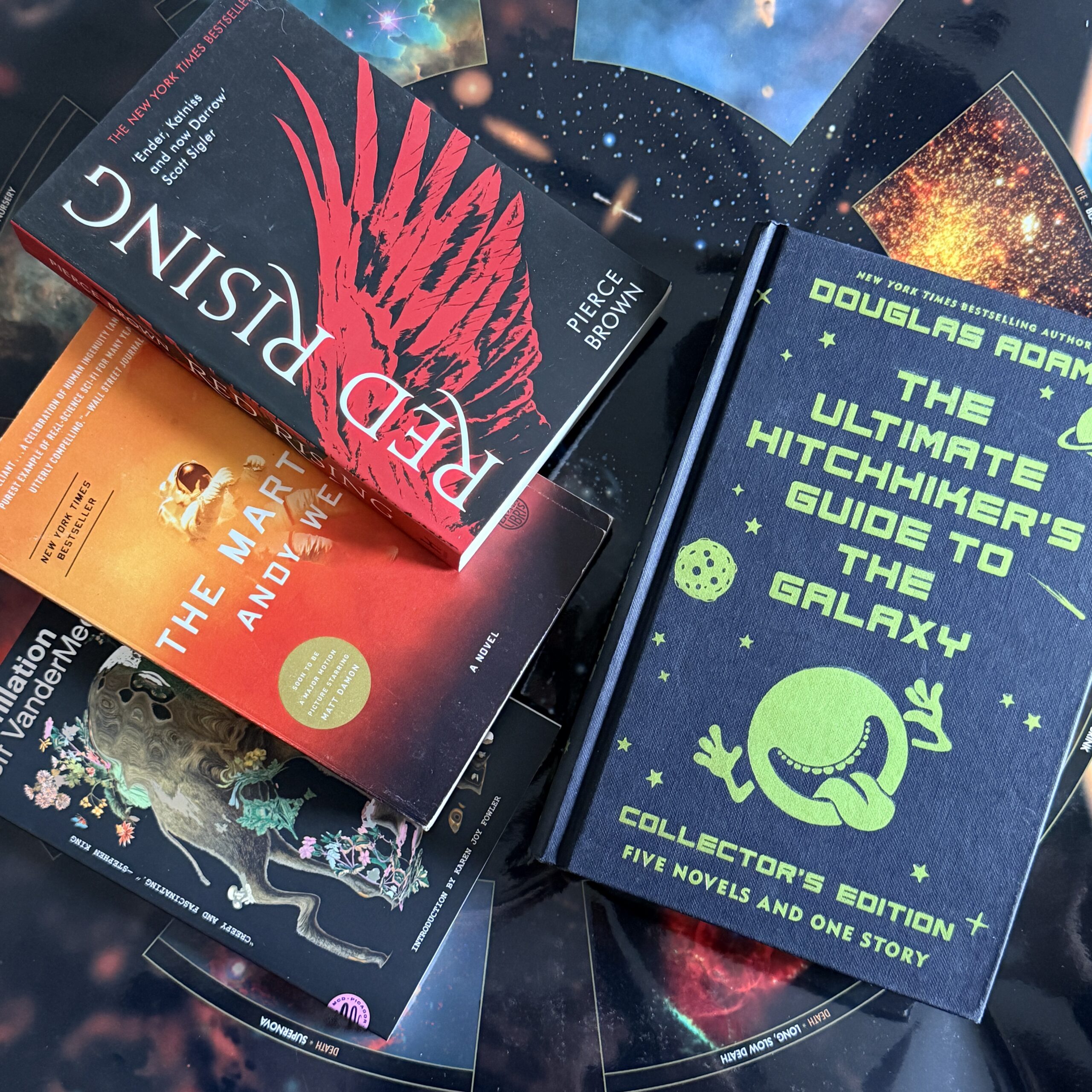 I wasn’t a “space” reader until my father-in-law left me his copy of The Martian. It sat on my shelf forever. But I picked it up during a reading slump. Before I knew it, I was laughing at this crazy guy and his humanure (you read that right) experiments.
